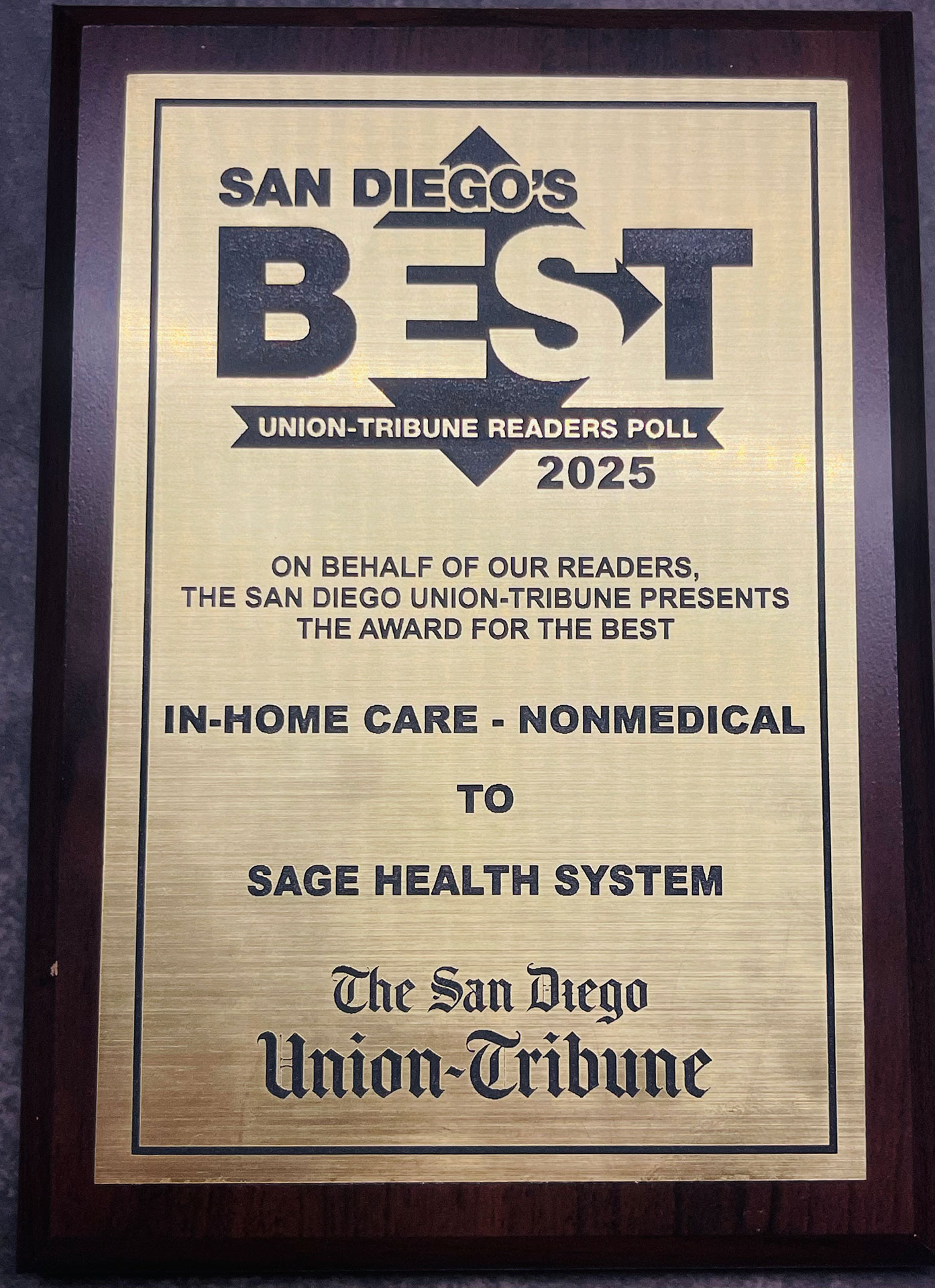 Sage Health System is proud to announce it has been awarded San Diego’s Best 2025 In-Home Care – Nonmedical by The San Diego Union-Tribune. This prestigious recognition celebrates the company’s unwavering commitment to delivering compassionate, personalized care that empowers clients to live safely, comfortably, and with dignity in the place they call home.